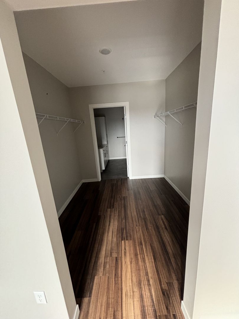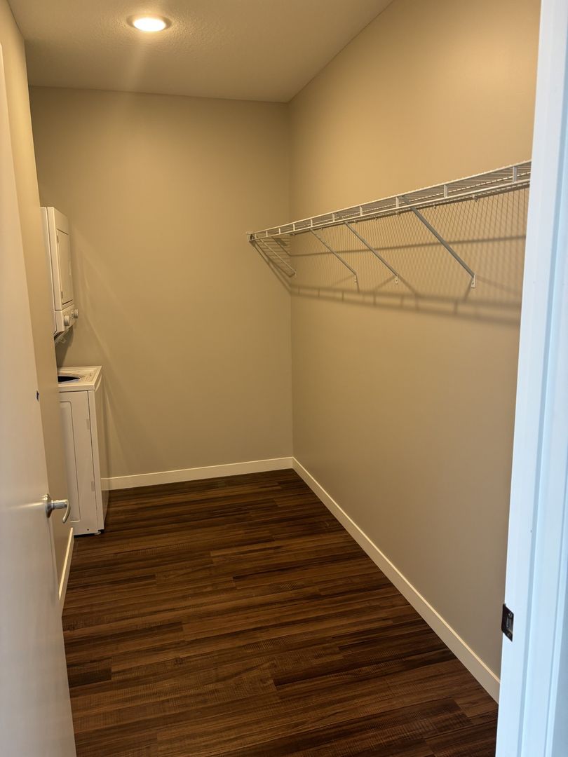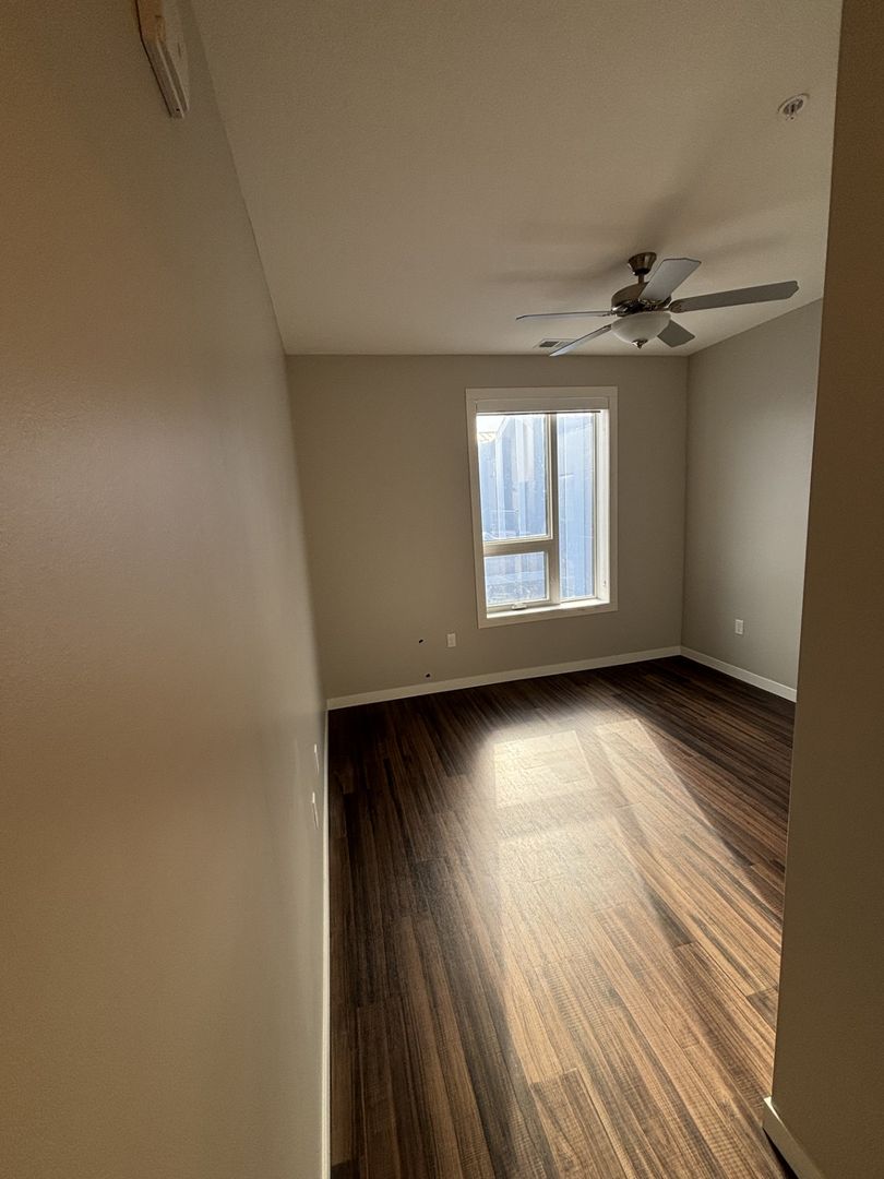 This two-bedroom layout offers the ideal space for sharing, featuring a designated living area alongside private bedrooms and bathrooms. The apartment boasts a contemporary kitchen equipped with energy-efficient stainless-steel appliances, quartz countertops, and ample storage. Additional highlights include laminate wood flooring, modern fixtures, a stackable washer and dryer, window coverings, ceiling fans, large closets, and a private outdoor balcony.