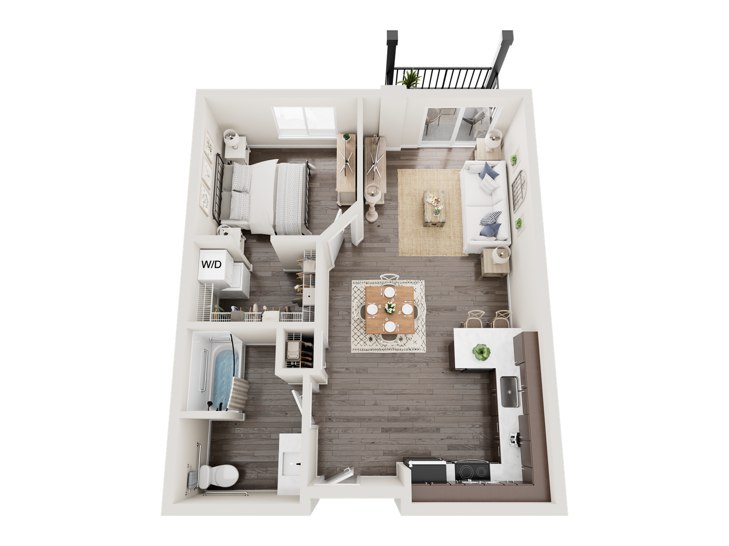 This ADA one-bedroom apartment offers a blend of comfort and style, featuring a modern eat-in kitchen with energy-efficient stainless-steel appliances, quartz countertops, and a generous coat closet for extra storage. The unit is enhanced with elegant laminate wood flooring, contemporary fixtures, and the convenience of a stackable washer and dryer. Enjoy year-round comfort with energy-efficient air conditioning and in-floor radiant heating. Additional amenities include window coverings, ceiling fans, a spacious closet, and a private outdoor balcony.